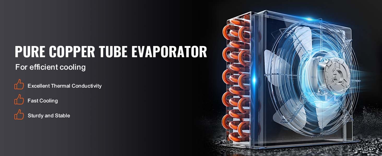 Laite on varustettu tehokkaalla Embraco 2.0 -kompressorilla ja puhtaasta kuparista valmistetulla höyrystimellä, joka tarjoaa erinomaisen lämmönjohtavuuden ja nopean jäähdytyksen. R404-A -kylmäaine ja tukeva rakenne takaavat vakaan ja pitkäikäisen toiminnan ammattikäytössä.