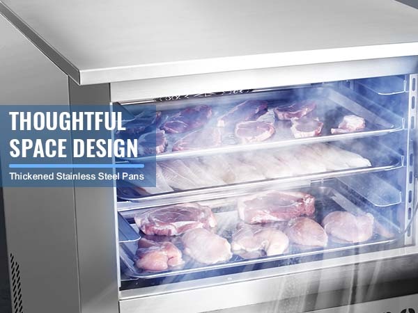 Mukana tulee 5 kpl paksusta ruostumattomasta teräksestä (SUS304) valmistettua alustaa. Altaiden korkeus on säädettävissä, ne kestävät hyvin muodonmuutoksia ja ne on helppo irrottaa puhdistusta varten. Tämä helpottaa erilaisten ruokien esijäähdytystä ja pakastusta.