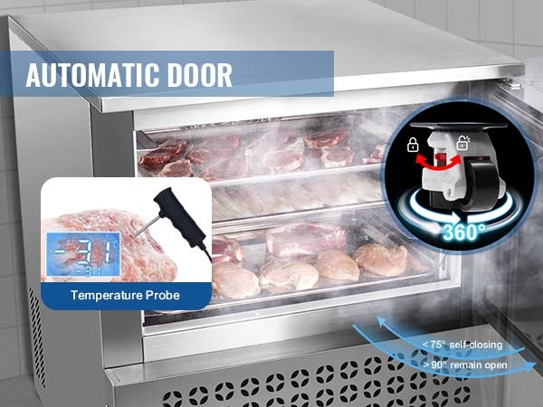 Pikalämpötilapakastimen tehokas jäähdytysjärjestelmä ja 360° kiertävä kylmä ilma laskevat kuumien ruokien lämpötilan noin 194℉/90℃ tasosta 37.4℉/3℃ tasolle noin 90 minuutissa. Pikalämpötilapakastustilassa lämpötila voidaan laskea 194℉/90℃ tasosta -0.4℉/-18℃ tasolle noin 240 minuutissa.