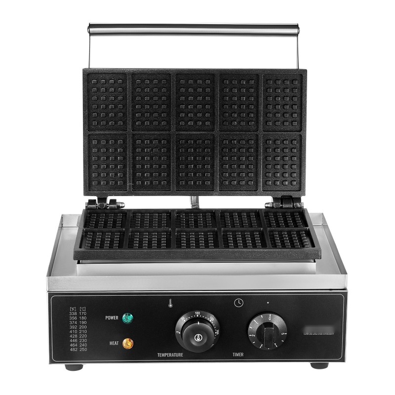 Ammattilaisen vohvelirauta HT-10, 10 suorakaidevohvelia, 1550W, tarttumaton, ruostumaton teräs