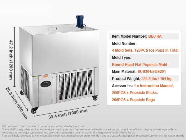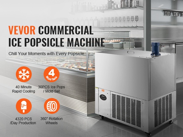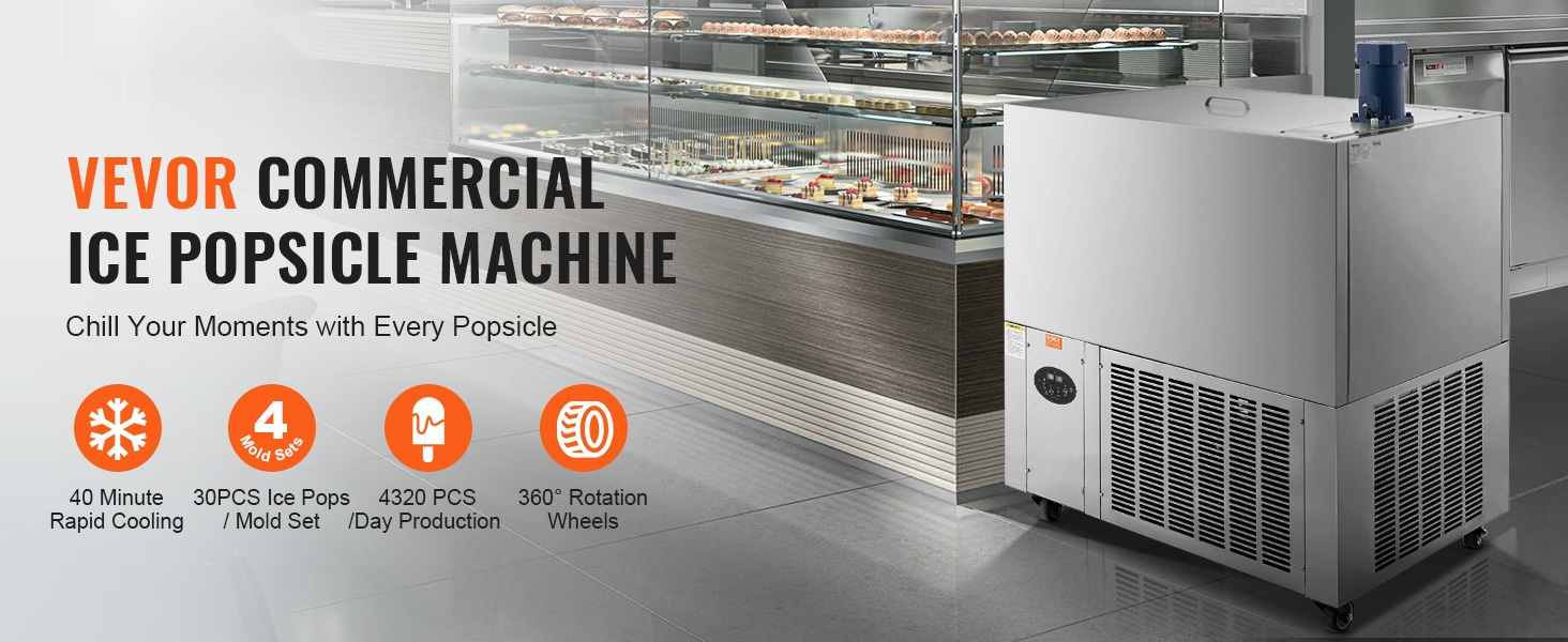 Ammattikäyttöön suunniteltu mehujääkone, jolla valmistat helposti erilaisia makuja baareihin, kahviloihin ja tee- ja jälkiruokamyymälöihin. Yhdellä muottisetillä voit tehdä kerralla 40 kpl mehujäätä, ja jopa 1440 kpl päivässä. Rakenne on ruostumatonta terästä, käyttö ja puhdistus on sujuvaa, ja kone on helppo siirtää pyörien ansiosta.