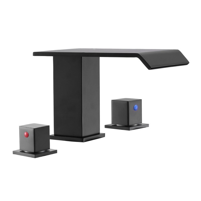 Ammehana 3-reikäinen ruostumaton teräsrunko mattamusta kaksi kahvaa vesiputoussuihku