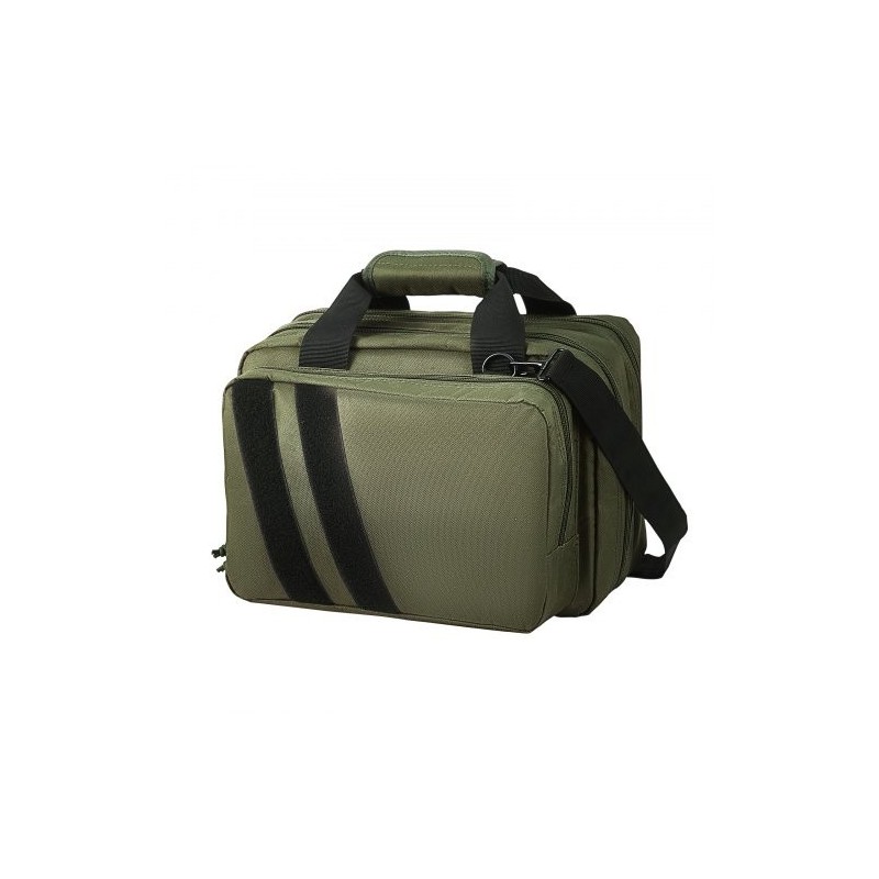 Kestävä ja tilava ampumaratalaukku, joka on suunniteltu kahden käsiaseen ja tarvikkeiden turvalliseen kuljettamiseen. Laukussa on päätasku ja 2 lisätaskua, joissa on hyvin jäsennelty säilytys esimerkiksi kuulosuojaimille, suojalaseille, taskulampulle ja käsineille.
