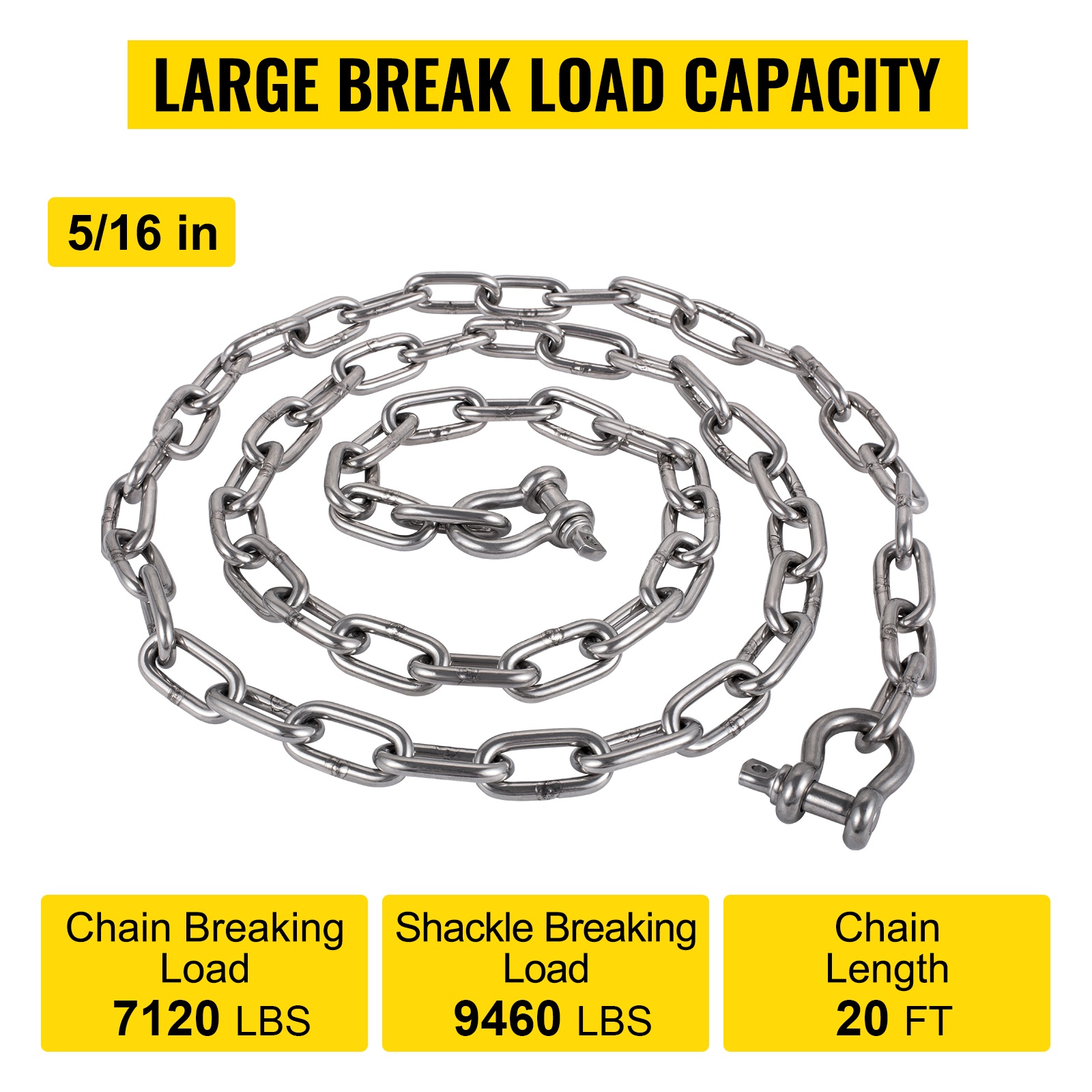 - Malli: 20' x 5/16" / 6.1 m x 7.9 mm ankkurikettinki