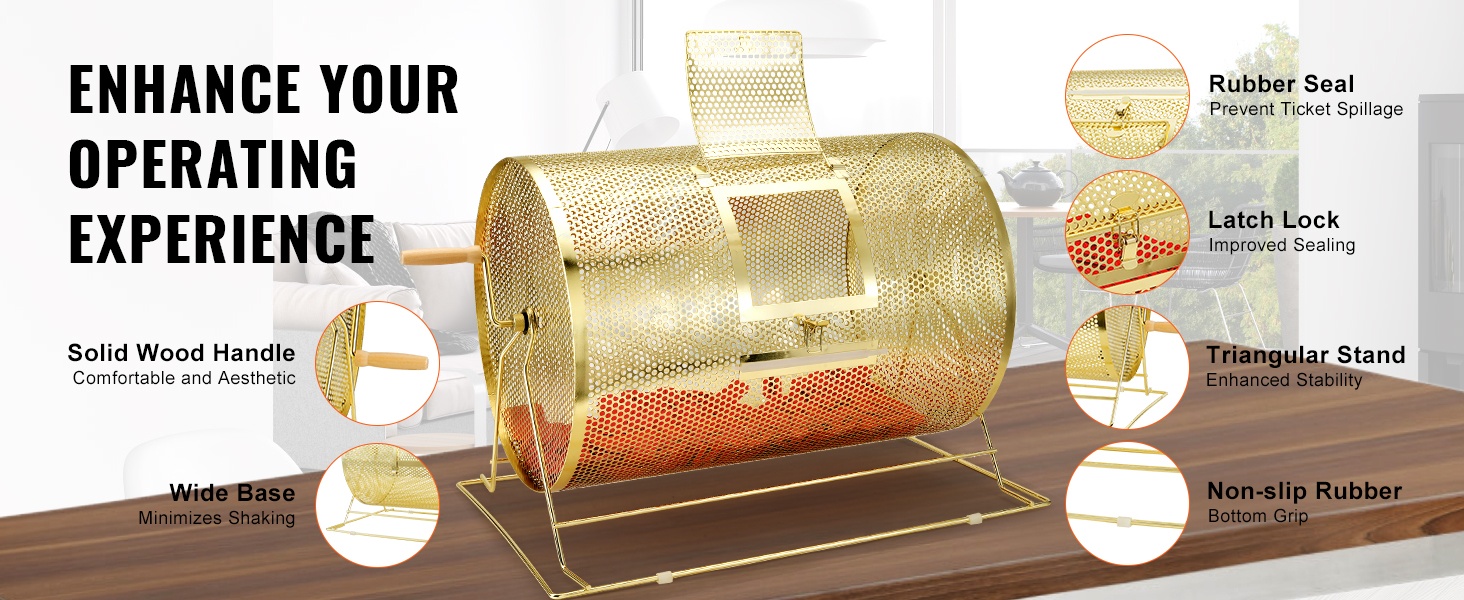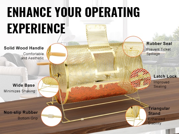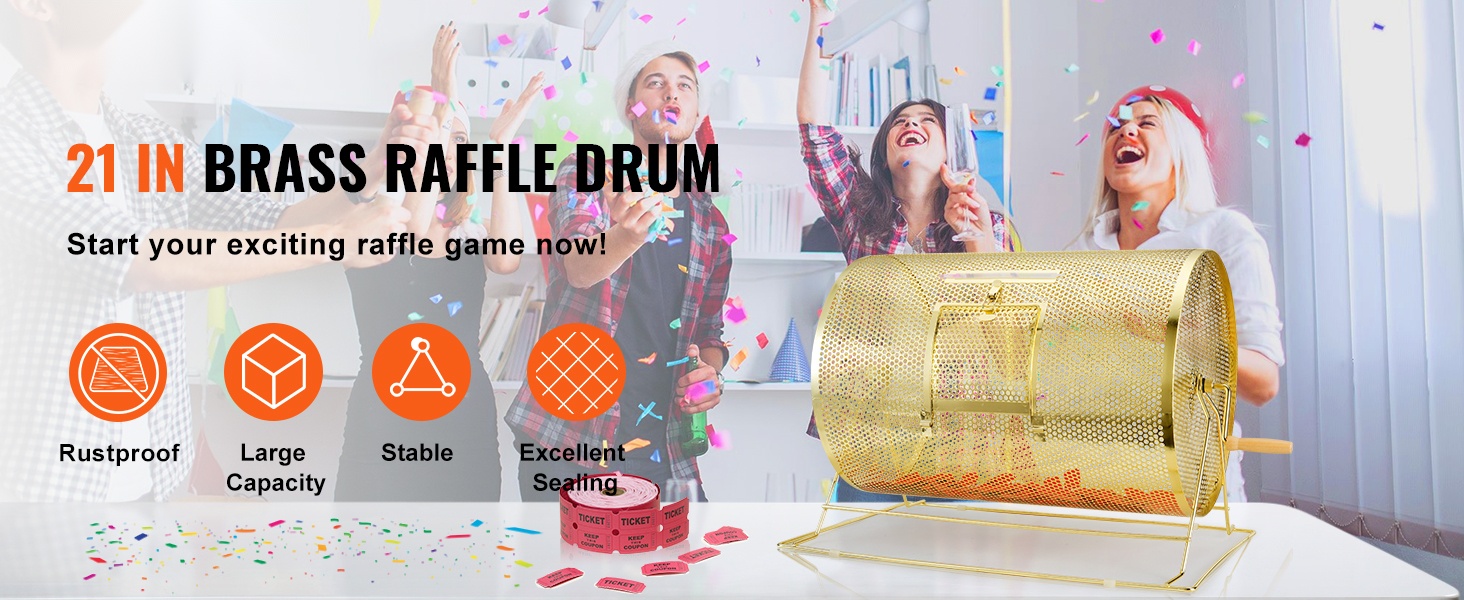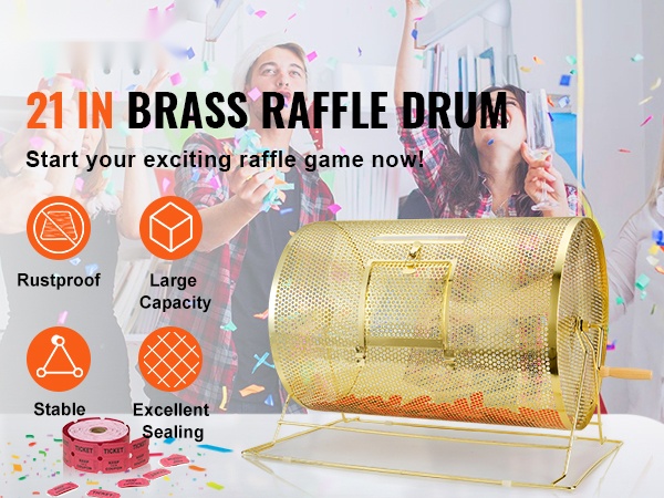 Arvontarumpu on valmistettu tukevasta teräksestä, joka on päällystetty messingillä ruosteenkestävyyden parantamiseksi. Suorakulmainen teräksinen jalusta lisää tukevuutta ja pitää rummun vakaana ja tasapainossa pyörittämisen aikana, mikä helpottaa arvonnan sujuvaa läpivientiä.