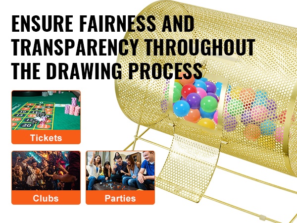 Tämä huolellisesti valmistettu arvontarumpu yhdistää kestävyyden, tyylikkään ulkoasun ja suuren kapasiteetin. Tilava rumpu vetää runsaasti arpalippuja tai pingispalloja, ja ontto rakenne varmistaa arvonnan läpinäkyvyyden ja satunnaisuuden koko prosessin ajan.