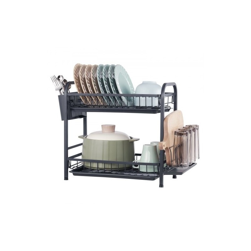 Astiankuivausteline kaksitasoinen ruosteenkestävä hiiliteräs musta suuri kapasiteetti valuma-alustalla