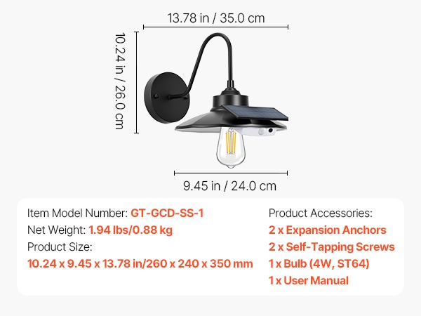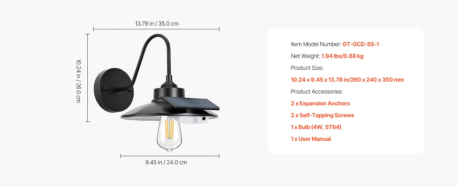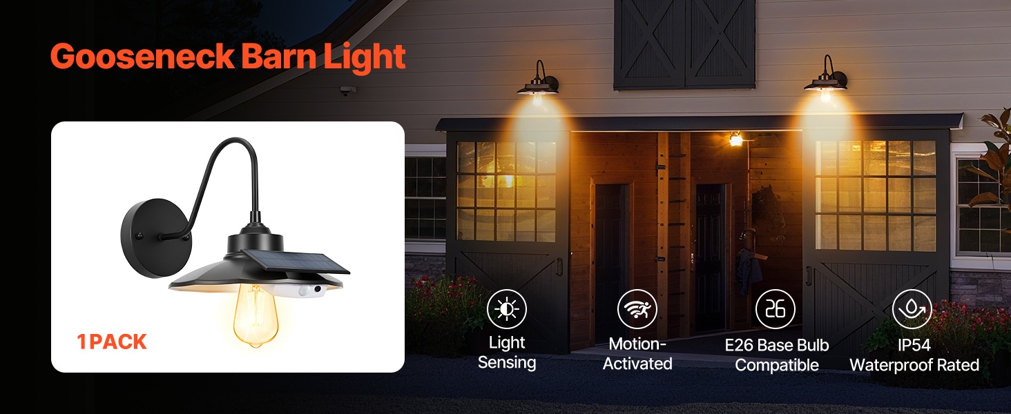 Älykäs aurinkokäyttöinen gooseneck-seinävalaisin ulkokäyttöön. Valaisin havaitsee automaattisesti ympäristön valon ja liikkeen, syttyy ja sammuu itsenäisesti ja vähentää näin energiankulutusta. Sisäänrakennettu 2550mAh akku ja 350LM valoteho tarjoavat valoa myös sähkökatkosten aikana. Korkeapainerauta ja ruostumista estävä, vedenpitävä pinnoite tekevät valosta sopivan terasseille, kuisteille ja autotalleihin.