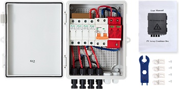 Yhdistelmärasia kokoaa neljän aurinkopaneelijonon syötöt yhteen ja johtaa ne yhdelle lähdölle. Se helpottaa huoltoa, parantaa johdotuksen selkeyttä ja auttaa pitämään järjestelmän rakenteen hallittuna sekä on- että off-grid-kokoonpanoissa.