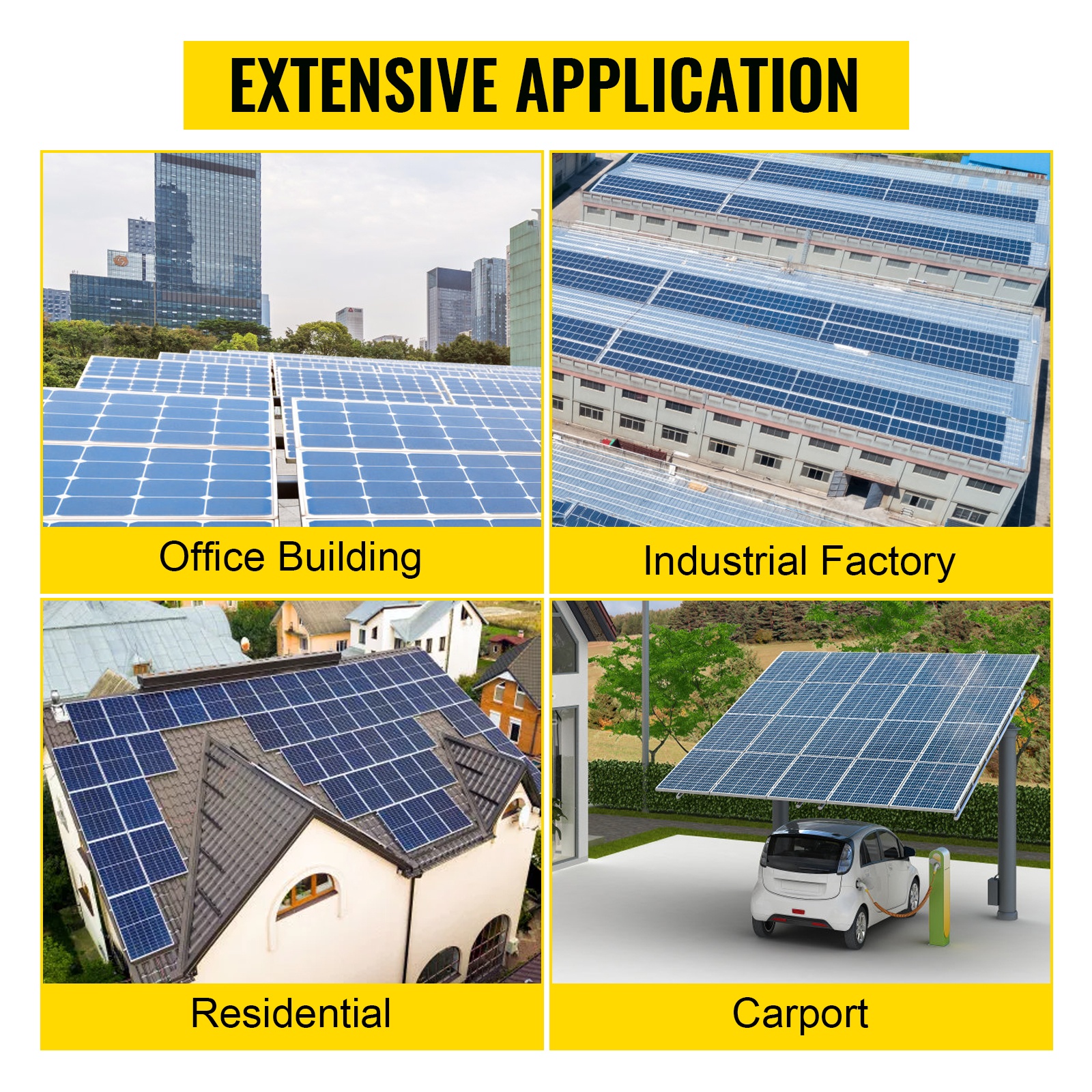 Soveltuu esimerkiksi asuinrakennuksiin, teollisiin kohteisiin, julkisiin tiloihin, projektikohteisiin sekä ajoneuvojen (kuten matkailuautojen) aurinkosähköjärjestelmiin.
