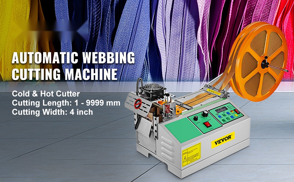 Tämä automaattinen teippileikkuri soveltuu sekä kuuma- että kylmäleikkaukseen. Mikro-tietokoneohjaus huolehtii tarkasta pituudesta ja helposta käytöstä. Laite sopii erikokoisten hihnojen ja nauhojen, kuten tarranauhan, nylonhihnojen, vetoketjunauhojen ja kuminauhojen leikkaamiseen.