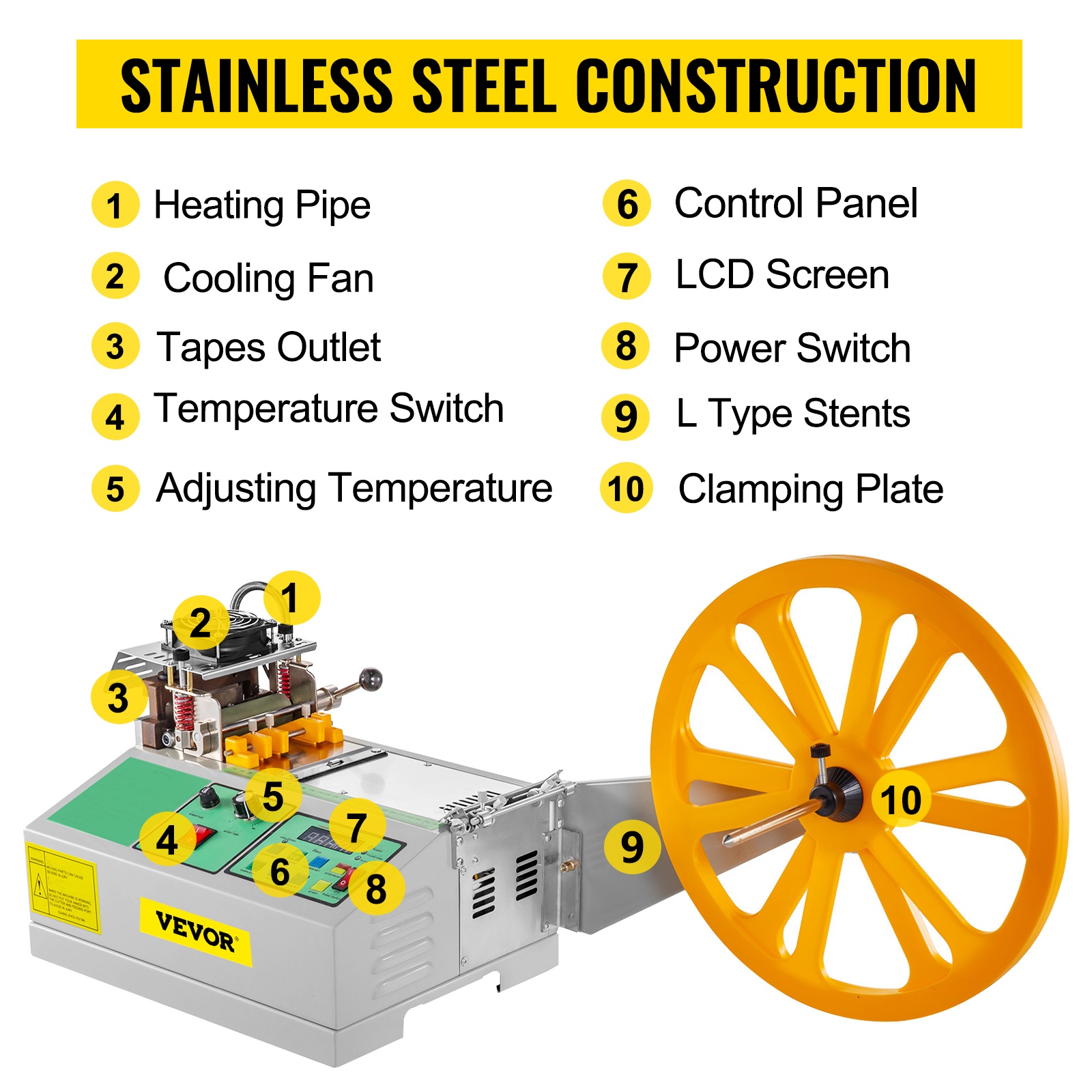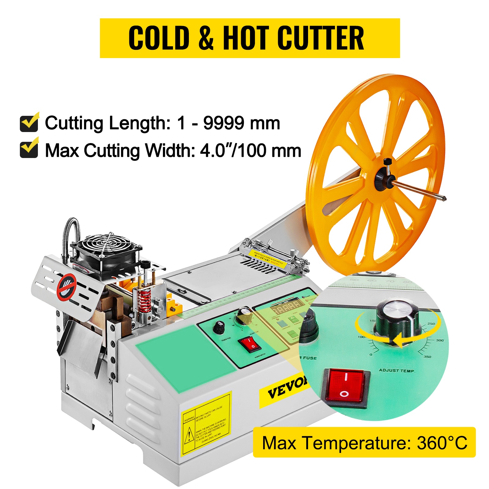 Leikkuri käyttää laadukkaita lämmitysputkia, jotka lämpenevät nopeasti ja pitävät lämpötilan tasaisena. Lämpötilaa voidaan säätää eri materiaalien ja nauhaleveyksien mukaan, jolloin leikkuupinta pysyy siistinä.