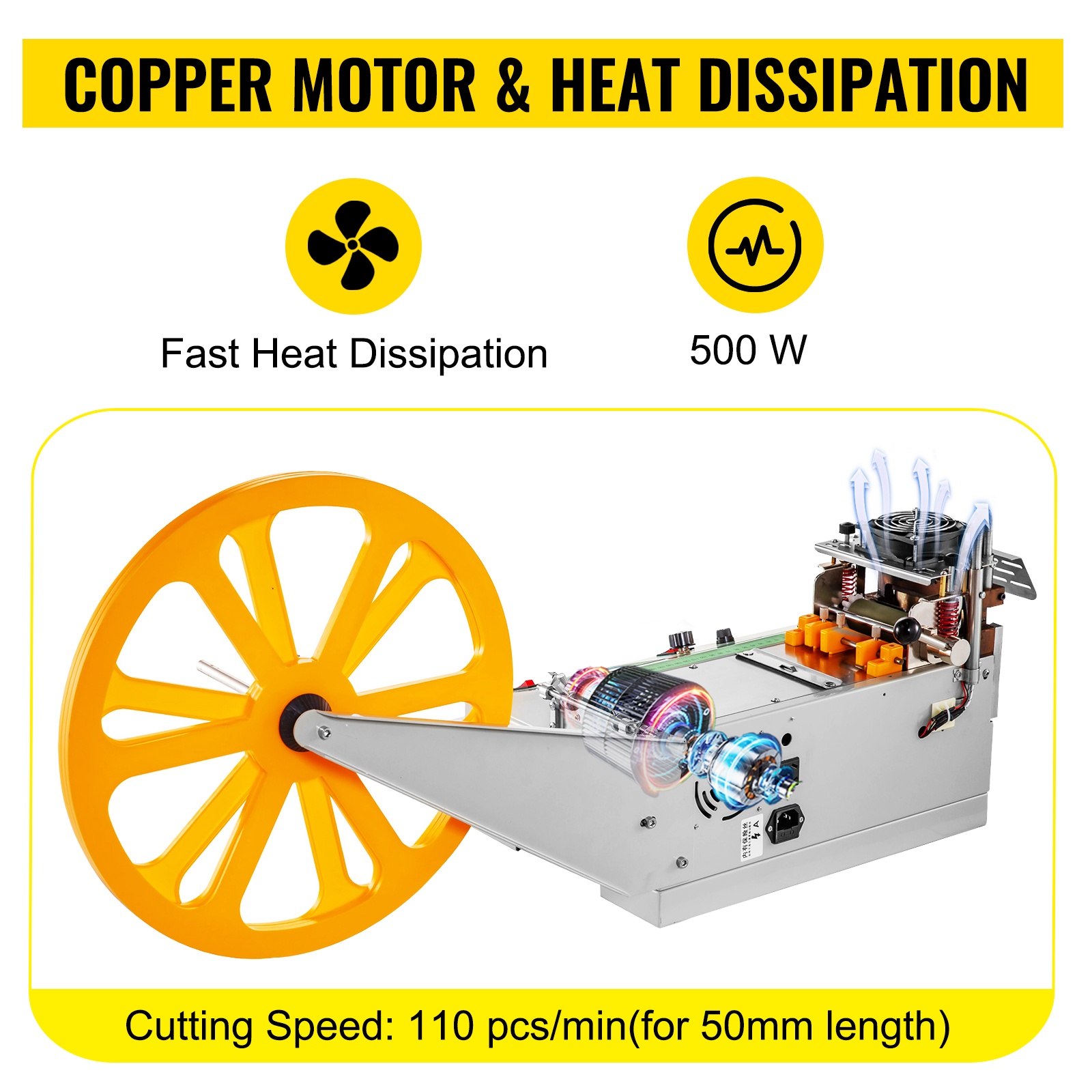 500 W moottori mahdollistaa nopean leikkausnopeuden jopa 110 kpl/min (50 mm pituudella). Suuri jäähdytyspuhallin parantaa turvallisuutta ja mahdollistaa pitkäkestoisen, keskeytymättömän työskentelyn.