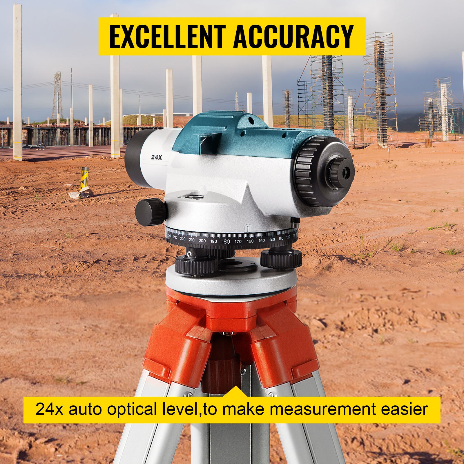 Optinen vaaituslaite mahdollistaa tarkan mittauksen tasolla 1/16 tuumaa 100 jalan etäisyydellä. Tämä riittää useimpiin rakennus-, maanrakennus- ja pihasuunnittelutöihin.