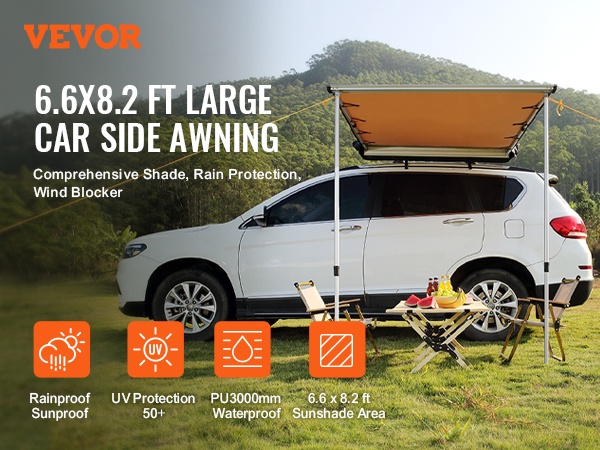 Auton sivumarkiisi polyesterikangas 4,6 x 6,6 jalkaa vedenpitävä säilytyslaukulla
