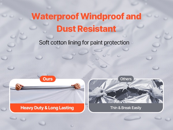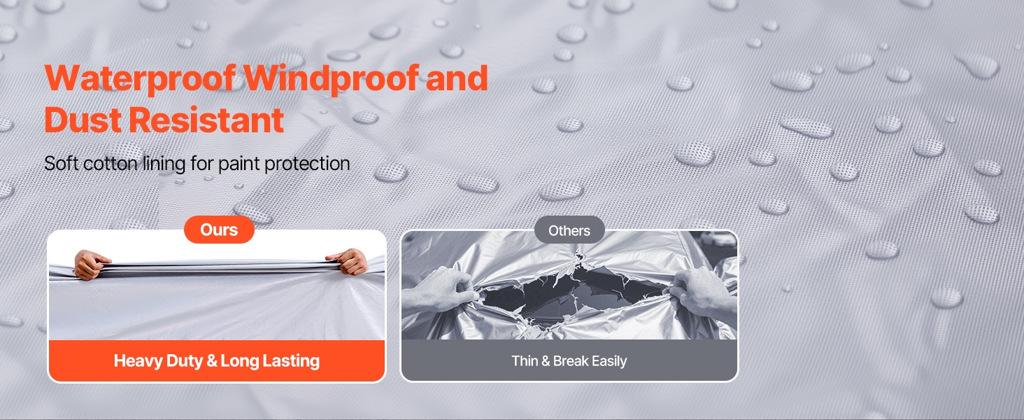 Ulkokäyttöön tarkoitettu peite yhdistää PEVA-alumiinikalvon ja puuvillavuoren, mikä parantaa lämmönkestoa, vesitiiveyttä ja nopeaa kuivumista. Kestävä, repeämistä vastustava materiaali antaa pitkäaikaisen suojan, ja pehmeä puuvillavuori auttaa säilyttämään auton maalipinnan hyväkuntoisena.
