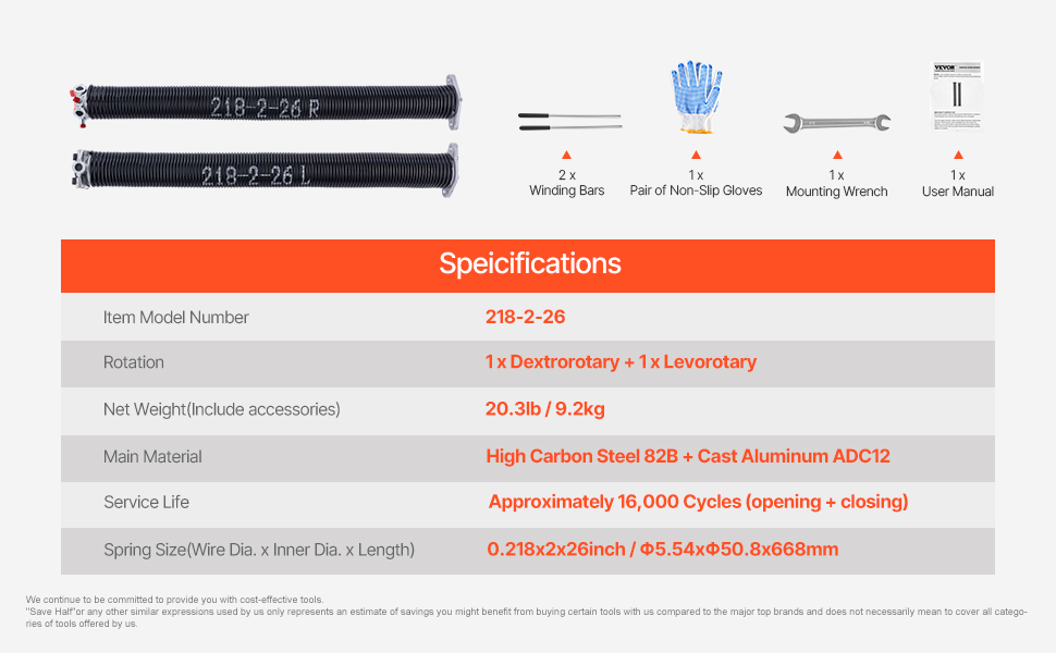 Nämä autotallin kääntöjouset on suunniteltu helpottamaan oven avaamista ja sulkemista turvallisesti ja tasaisesti. Jouset ovat valmistettu korkeahiilisestä teräksestä 82B ja valetusta alumiinista ADC12, mikä takaa hyvän kuormankeston ja pitkän käyttöiän.