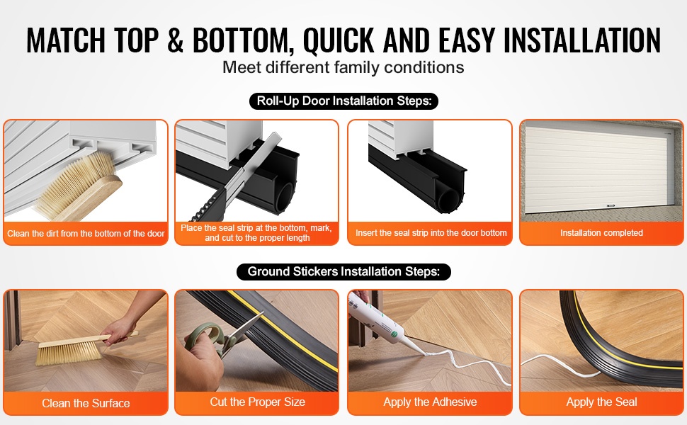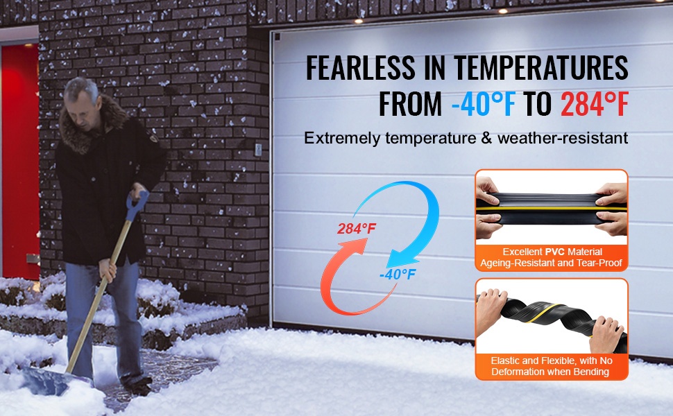 Tämä autotallin oven kynnyksen ja alatiivisteen setti auttaa pitämään autotallin puhtaampana ja suojattuna ulkoisilta olosuhteilta. Kestävästä PVC:stä valmistetut tiivisteet kestävät ajoneuvon painon ja muodostavat tiiviin esteen pölyä, vettä, vetoa ja roskia vastaan. Tiivisteet toimivat luotettavasti laajalla lämpötila-alueella -40℉ – 284℉ ja sopivat monentyyppisiin autotalli- ja varasto-oviin.