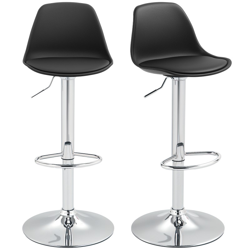 Baarijakkara 2 kpl setti, säädettävä korkeus, tekonahka, teräsrunko, 42 x 41 x 82–104 cm, musta