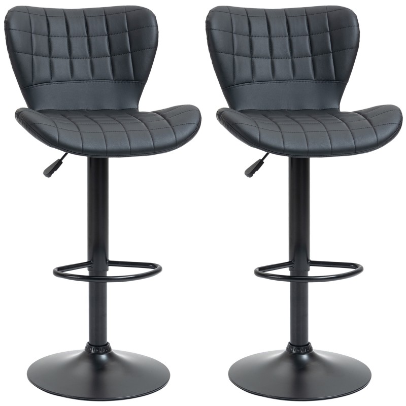 Baarijakkarasetti keittiöön, keinonahka ja metalli, säädettävä 61–81 cm, 2 kpl, musta