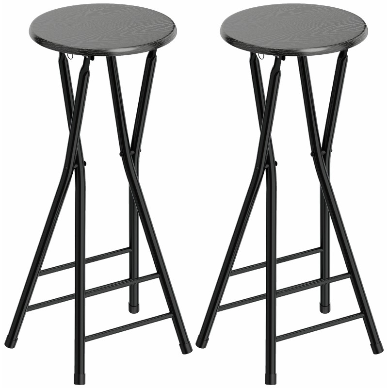 Baarituoli 2 kpl setti, kokoontaitettava, teräsrunko ja MDF-istuin, 34 x 30 x 70 cm, musta