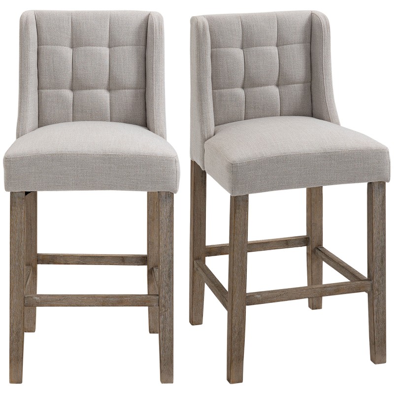 Tämä kahden baarituolin setti tuo keittiösaarekkeelle, kotibaarille tai oleskelutilaan hillityn tyylikkään ilmeen ja miellyttävän istumamukavuuden. Harmaa verhoilu, nappikoristeltu selkänoja ja luonnonsävyinen massiivipuu muodostavat ajattoman yhdistelmän, joka sopii monenlaiseen sisustukseen. Pehmeä istuin ja käytännöllinen jalkatuki tekevät tuoleista mukavia käyttää myös pidempään istuttaessa.