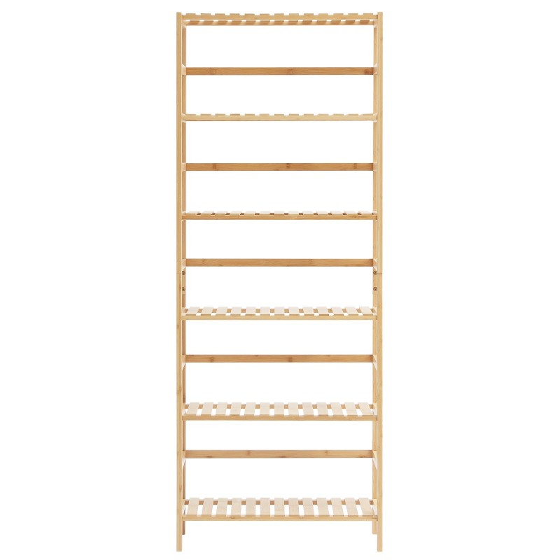 Tämä tikasmallinen puuhylly ei ole vain kirjahylly. Sitä voi käyttää myös kylpyhuonehyllynä pyyhkeille ja kosmetiikalle, kukkatelineenä viherkasveille tai säilytyshyllynä keittiössä ja eteisessä. Neutraali bambun sävy sopii monenlaisiin sisustustyyleihin.