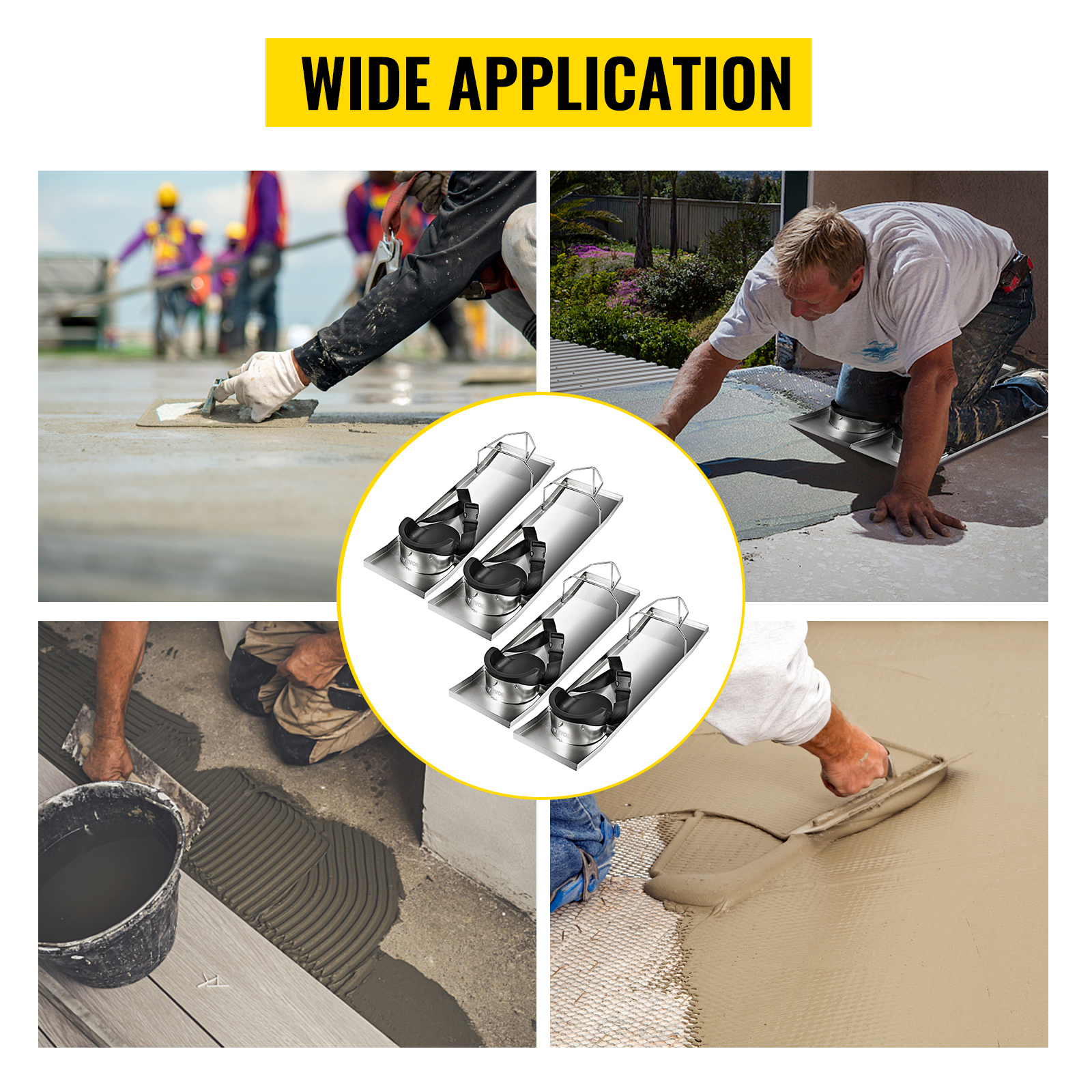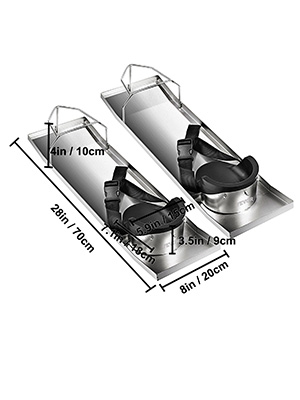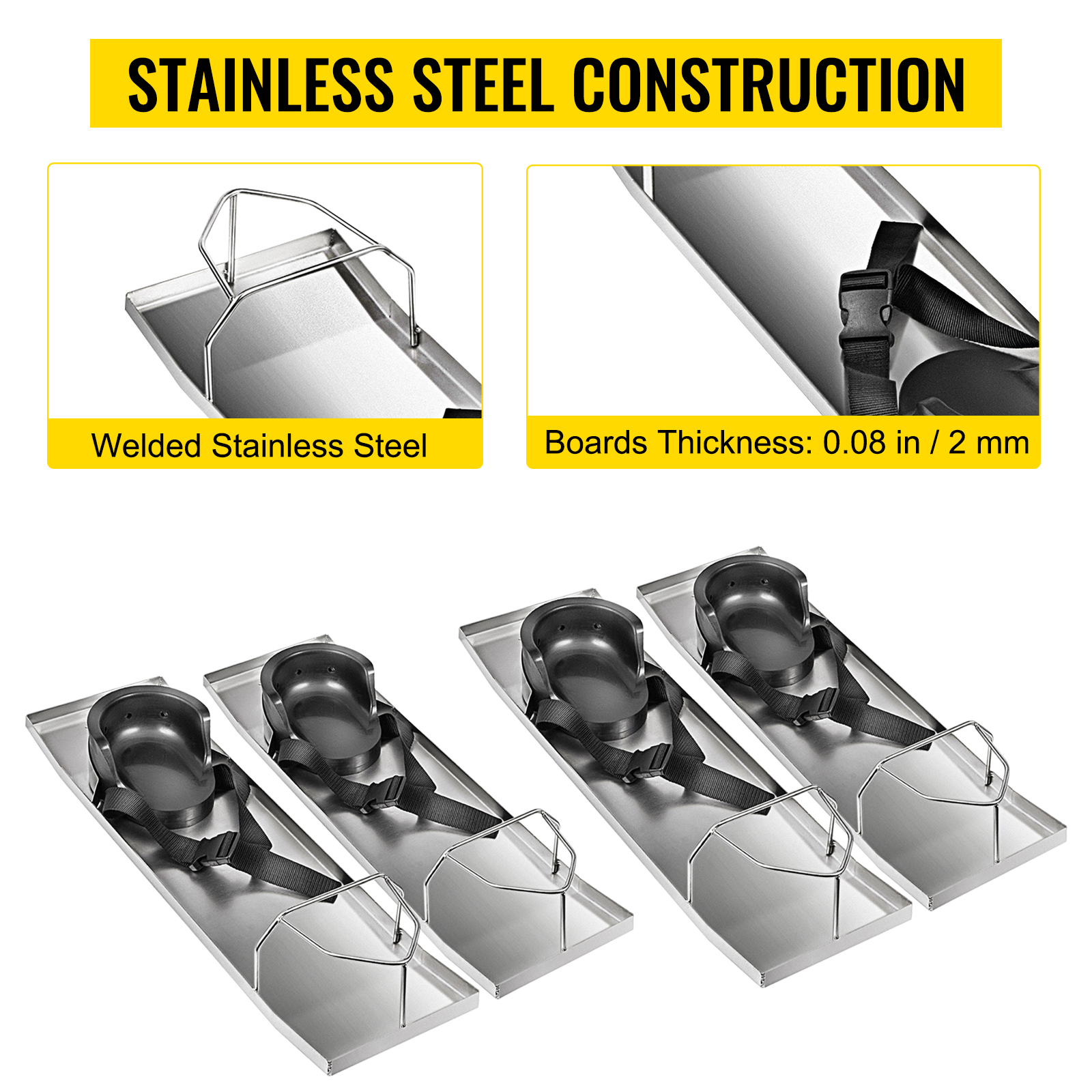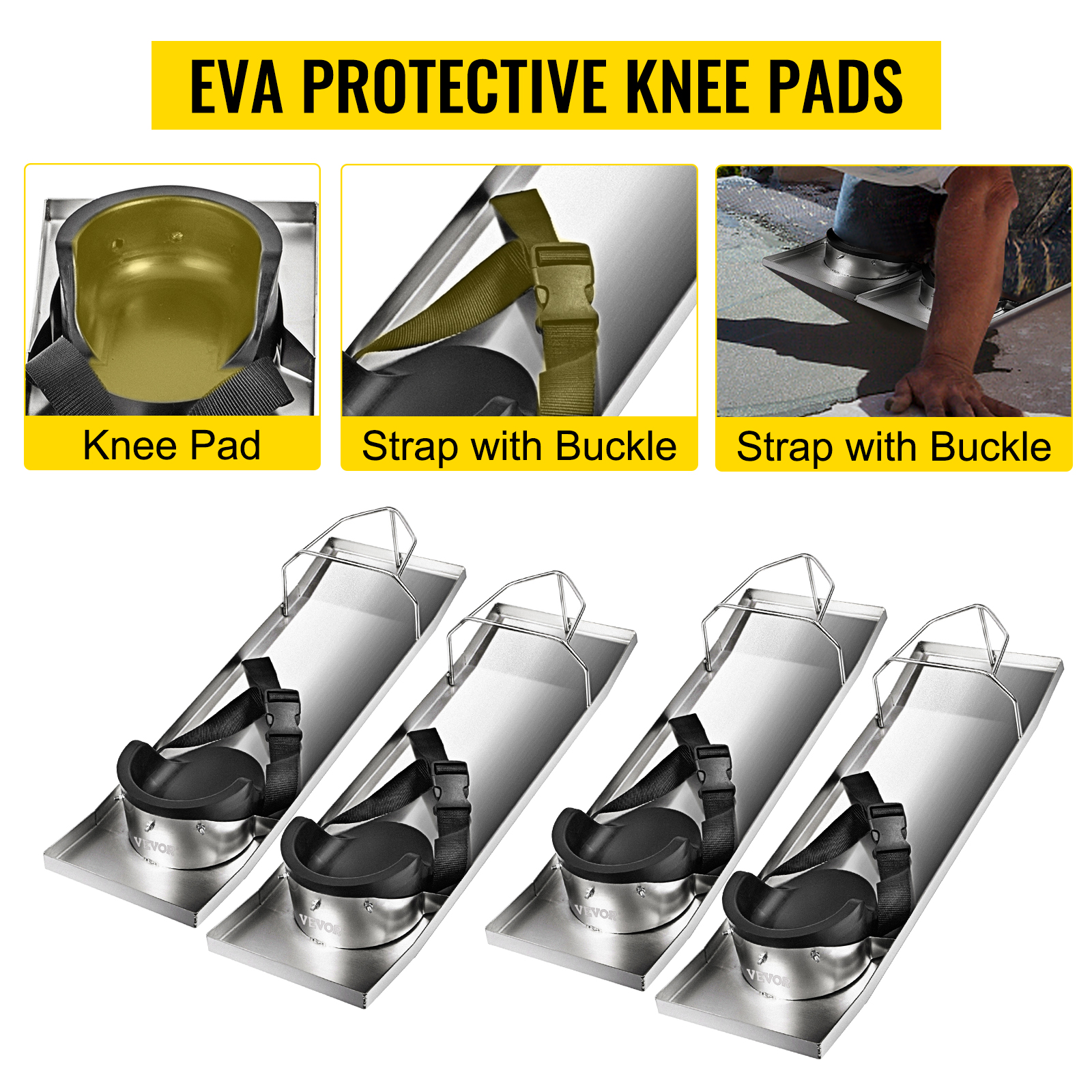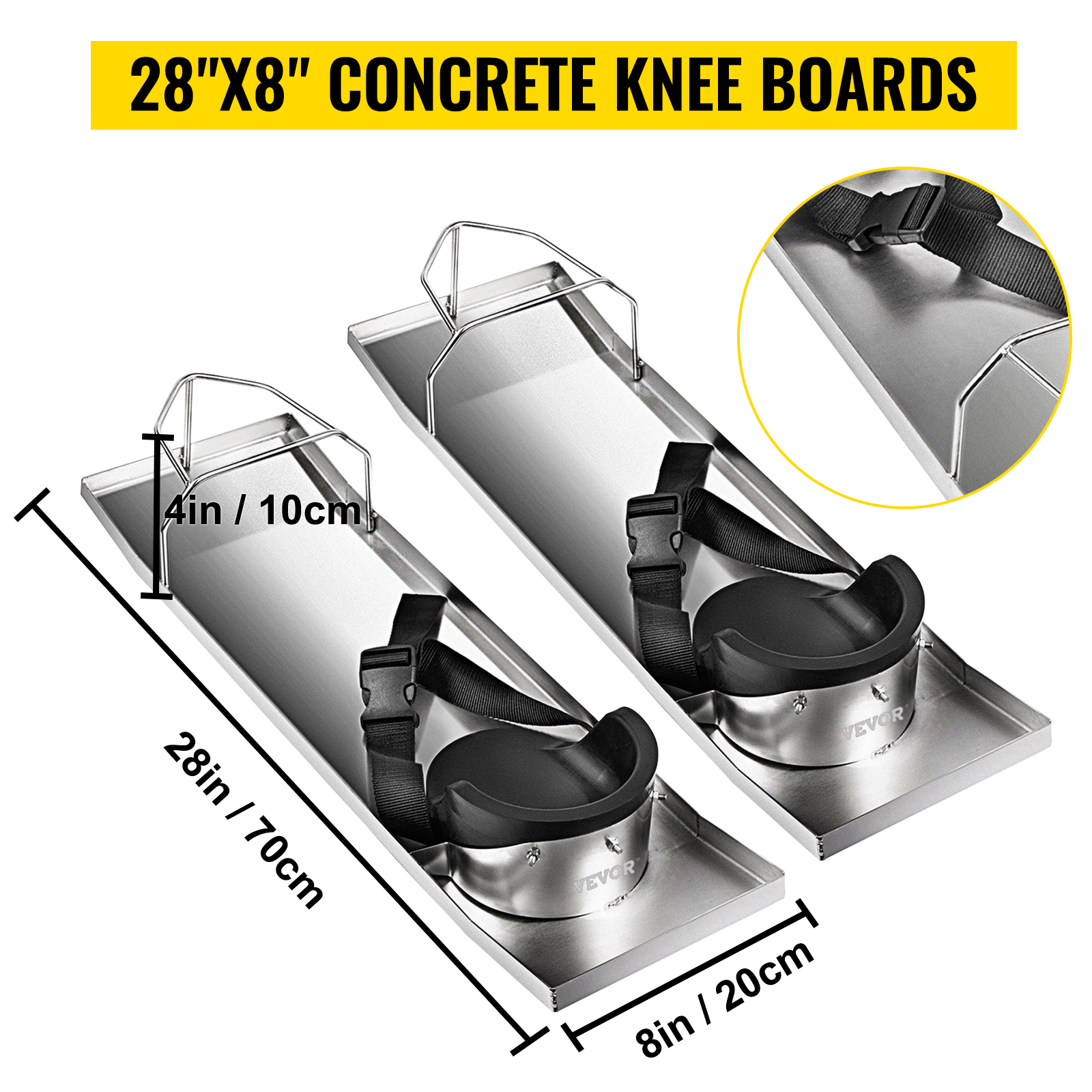 2 paria 28"x8" betonipolvilautaliukureita ruostumattomasta teräksestä. Kevyet lautaset liukuvat sujuvasti tuoreen betonin pinnalla ja suojaavat pintaa työskentelyn aikana. Mukana pehmeät EVA-polvisuojat sekä hihnat ja soljet, joilla polvisuojat pysyvät tukevasti paikoillaan.