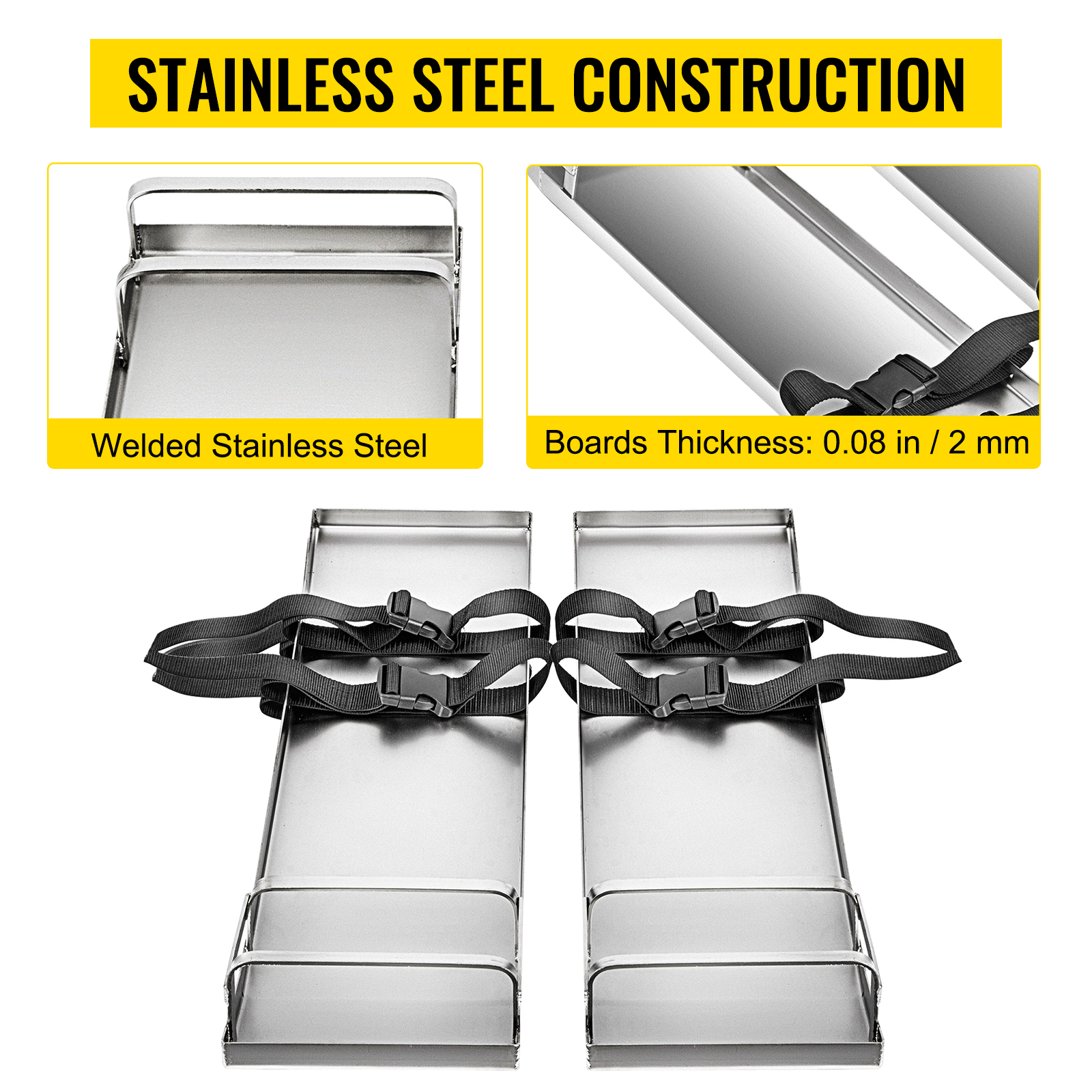 Betonipoljinlaudat ruostumatonta terästä 75x20x6 cm, pari polvituilla ja remmeillä betonin viimeistelyyn