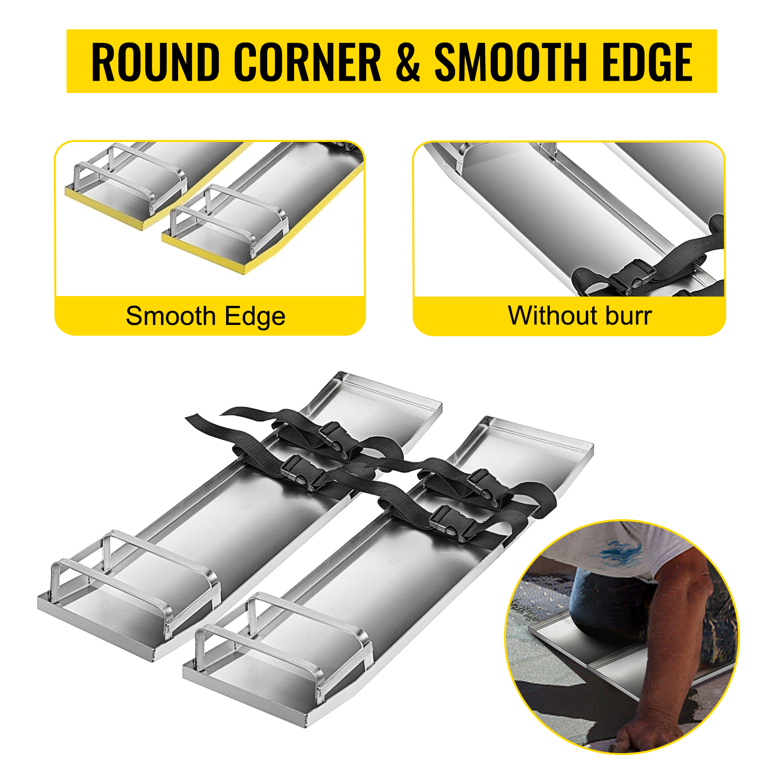 Kevyet ja tukevat 30"x8" betonipoljinlaudat helpottavat työskentelyä märän betonin päällä. Ruostumattomasta teräksestä valmistetut laudat liukuvat tasaisesti ja suojaavat sekä valupintaa että polvia viimeistelytyön aikana.