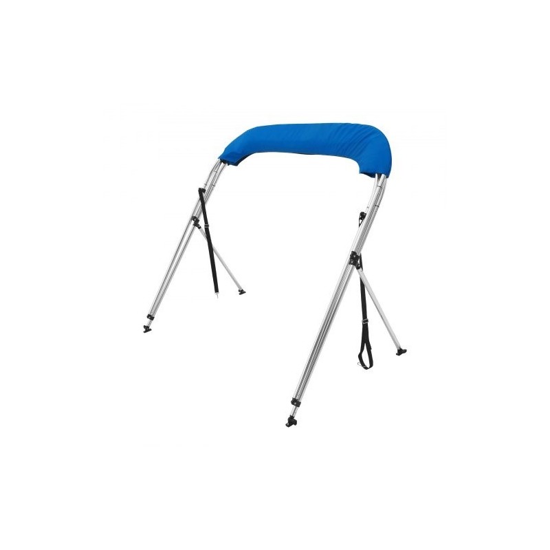 900D polyesterikankaasta valmistettu bimini-veneaurinkokatos suojaa sekä auringolta että sateelta. Kestävä, ruostumaton alumiinirunkoinen rakenne kestää kovempaakin tuulta, ja kevyt rakenne ei kuormita venettä. Mukana tulee säilytyspussi siistiä ja helppoa säilytystä varten.