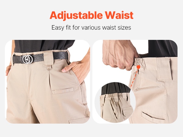 Housuissa on kaksinkertainen vyötärörakenne: joustava kuminauhavyötärö sekä vyölenkit. Tämä helpottaa istuvuuden säätämistä eri vartalotyypeille ja vyötärönympäryksille. Voit käyttää housuja pelkän joustovyötärön varassa tai yhdessä vyön kanssa lisätuen saamiseksi.