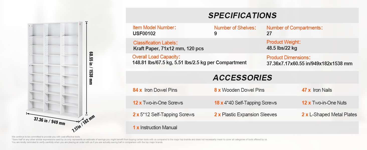 Kaappi toimitetaan seinäkiinnitystulpilla lisävakautta varten, mikä tekee DVD-hyllystä turvallisemman erityisesti koteihin, joissa on lapsia.