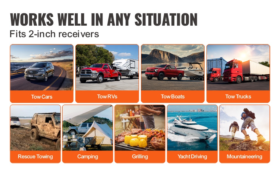 Palautus- ja vetosakkeli sopii perävaunujen vetoon, ajoneuvojen irti vetämiseen, veneiden siirtämiseen sekä retki- ja maastokäyttöön. Se istuu suoraan 2" vetopäähän ja soveltuu monenlaisiin ajoneuvoihin.