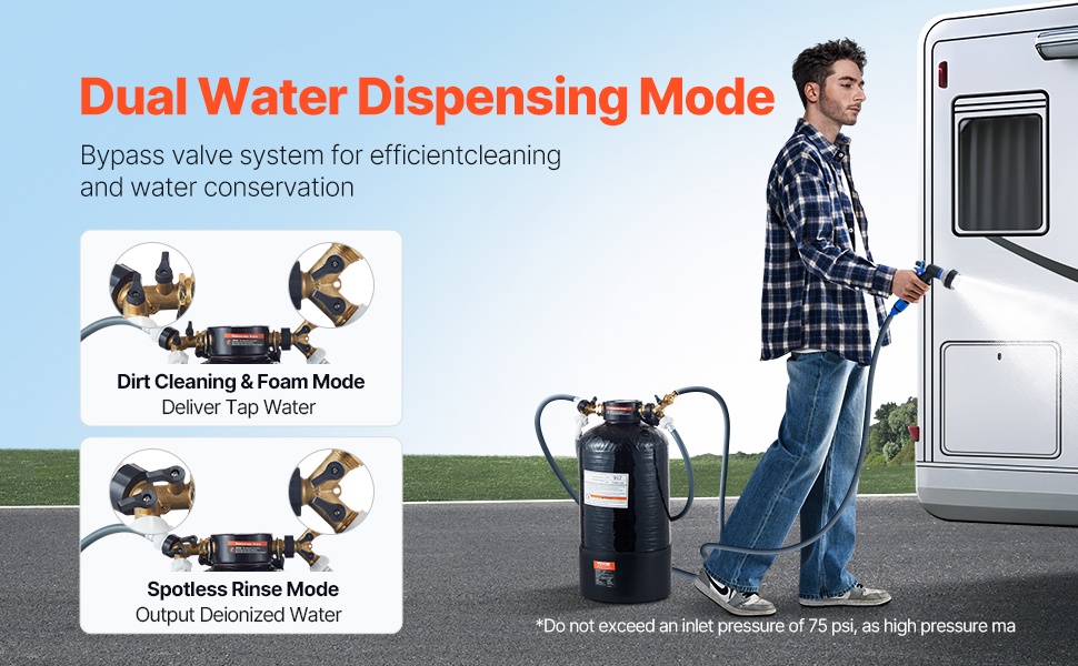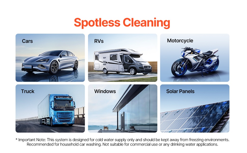 Tämä deionisoidun veden järjestelmä sopii kotikäyttöön auton pesussa. Se ehkäisee kovasta vedestä syntyvät vesijäljet ja jättää pinnan raidattoman ja kiiltävän. Järjestelmää voidaan käyttää myös veneiden, moottoripyörien, ikkunoiden ja aurinkopaneelien puhdistukseen, jolloin pinnat pysyvät vapaina kalkkisaostumista.