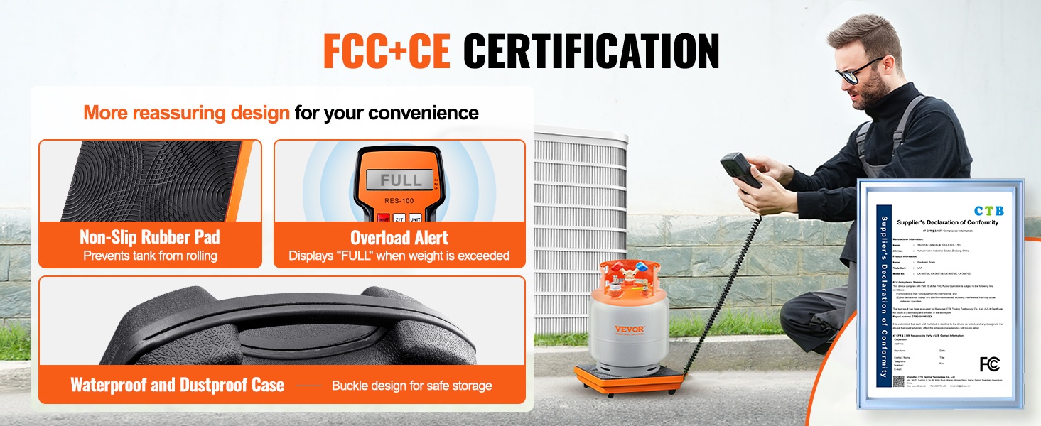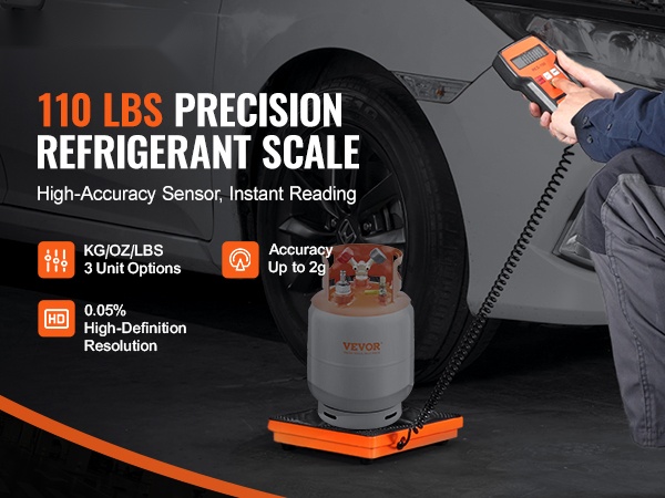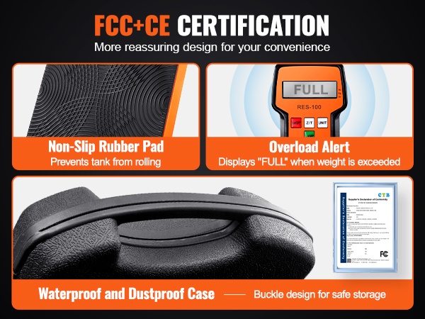 - Weighing Capacity: 110 LBS / 50 kg kylmäainepulloille ja -säiliöille