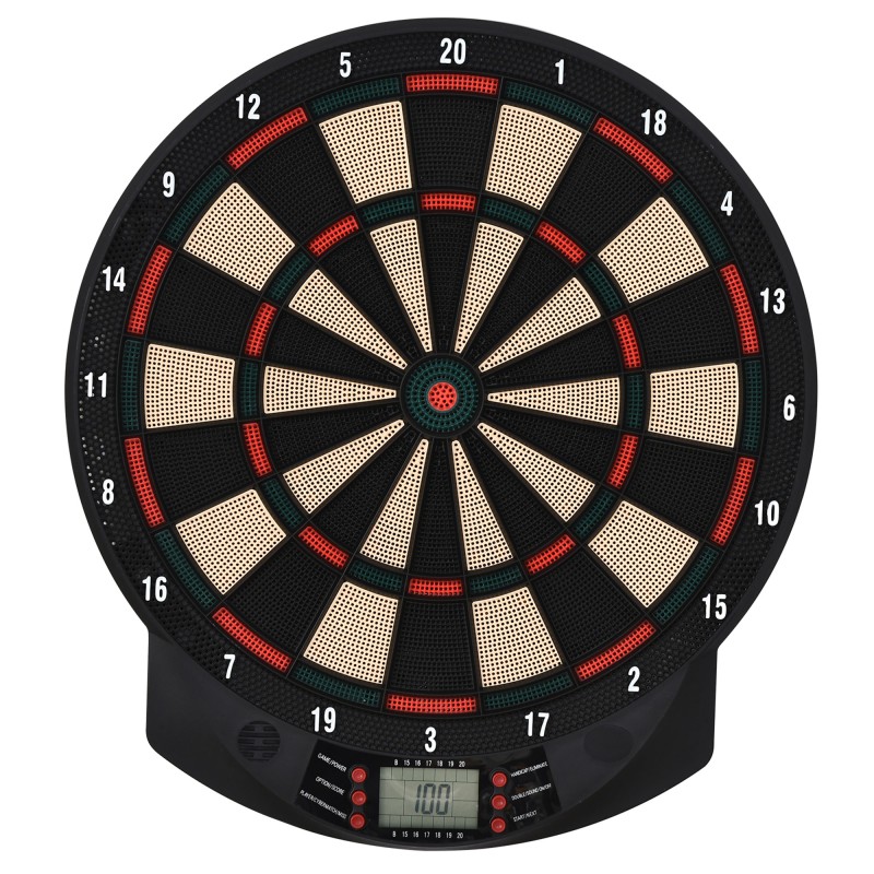 Elektroninen tikkataulu, automaattinen pisteytys, 26 peliä, 6 tikkaa, 30 vaihtokärkeä, 44 x 39,5 x 2,2 cm, musta