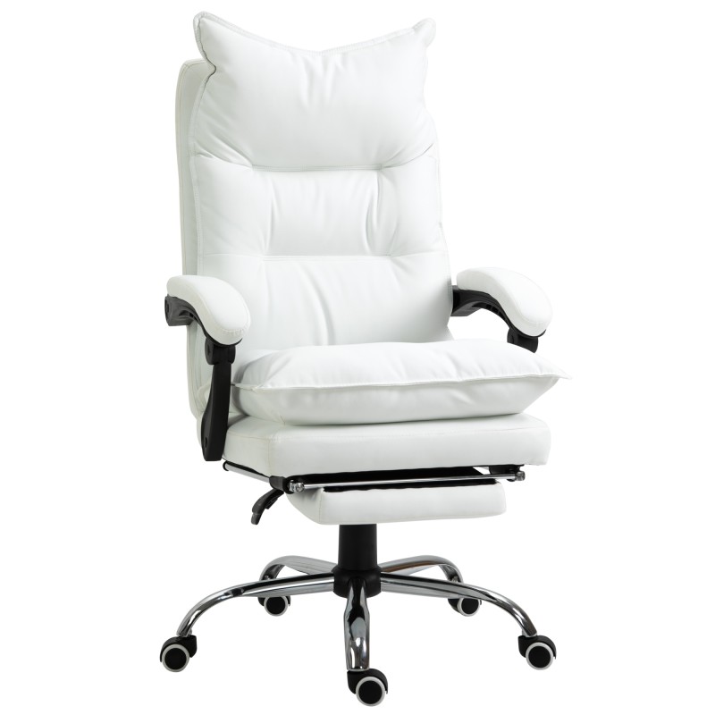 Ergonominen työtuoli jalkatuella, keinonahkaa, kallistettava, säädettävä, valkoinen