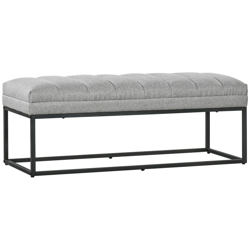 Eteispenkki teollistyylinen pehmustettu kangaspenkki metallijaloilla 120x44x45,5 cm vaaleanharmaa/musta