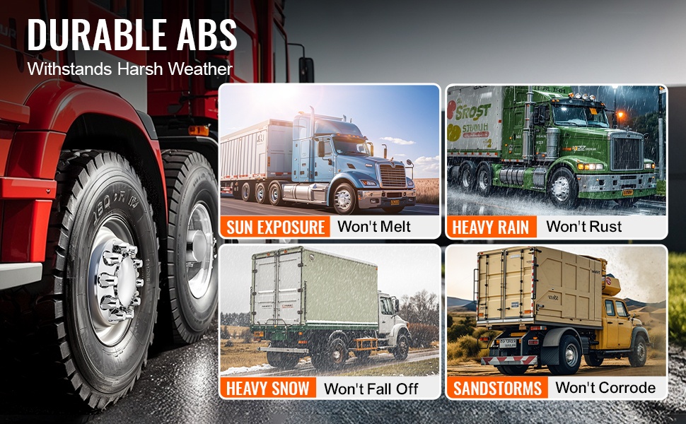 Vannekehä ja mutterinsuojukset on valmistettu tukevasta ABS-muovista, joka pysyy muodossaan ja ehjänä vaativissakin sääolosuhteissa. Se kestää auringonpaahteen, rankkasateen, lumen sekä hiekan ja suolan rasituksen, suojaten vanteita ja muttereita päivittäisessä käytössä.