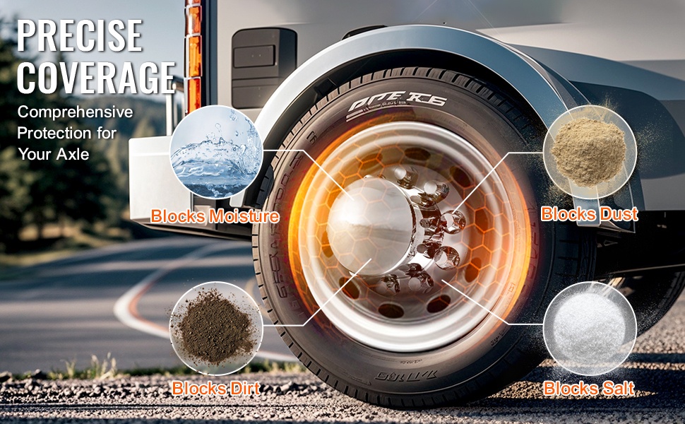 Täydellinen etuakselin suojasarja peittää akselin ja mutterit tarkasti, vähentäen kosteuden, pölyn, lian ja tiesuolan pääsyä kriittisiin kohtiin. Tämä auttaa ehkäisemään korroosiota ja kulumista, mikä voi tukea ajoneuvon turvallista ja luotettavaa käyttöä.