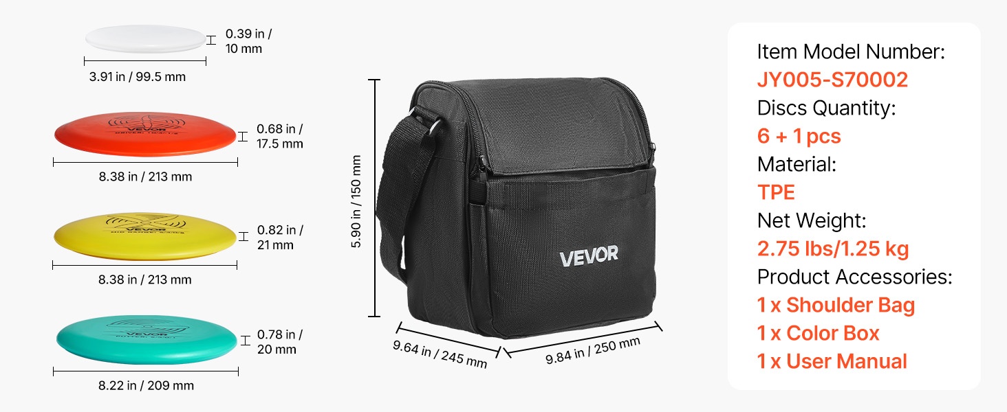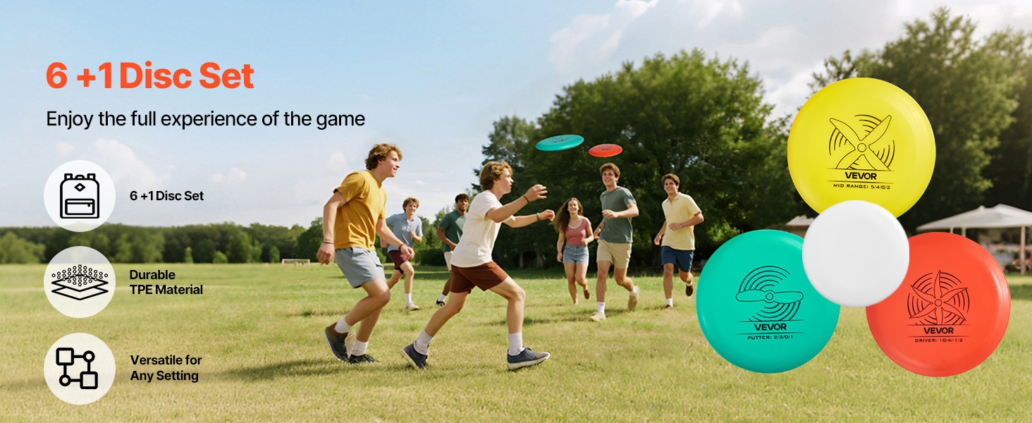 Frisbeegolfsetti 6+1 kiekkoa TPE-muovia reppu kolmella taskulla