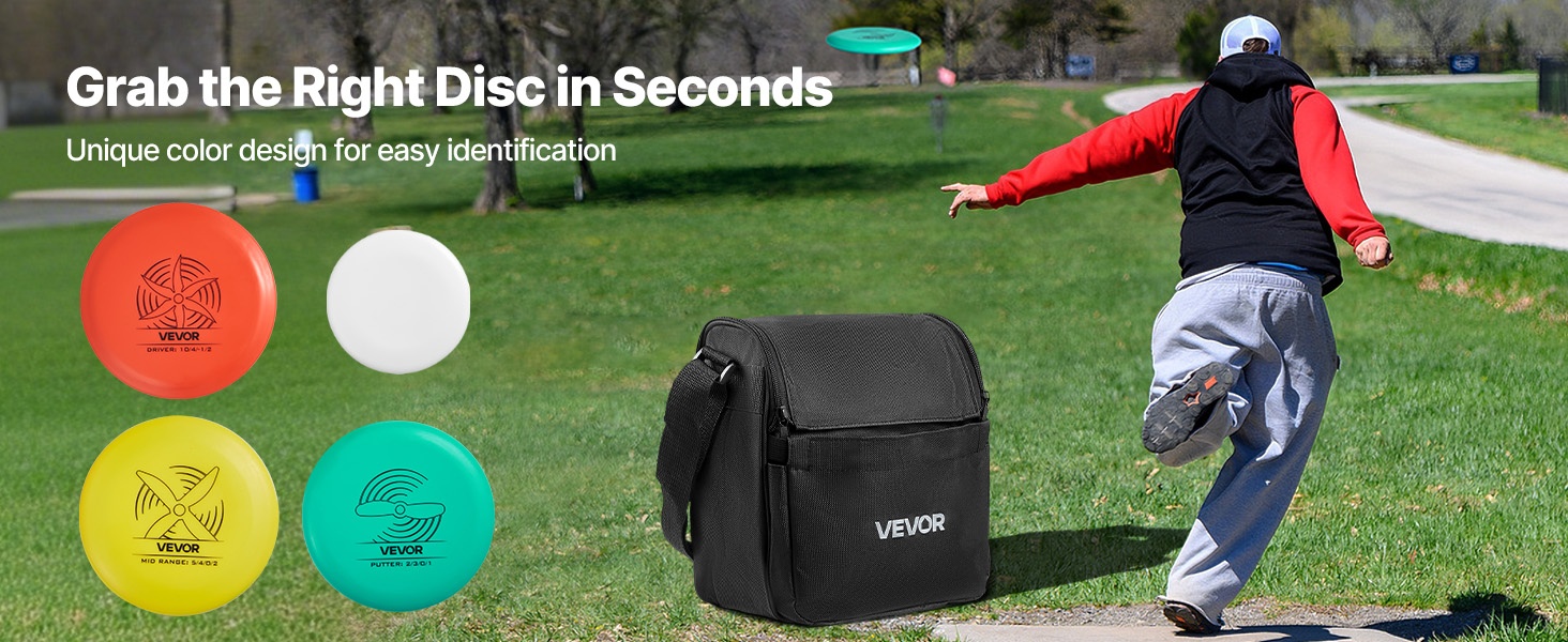 - 6 frisbeekiekkoa + 1 minimerkkaus-kiekko ja kannettava reppu