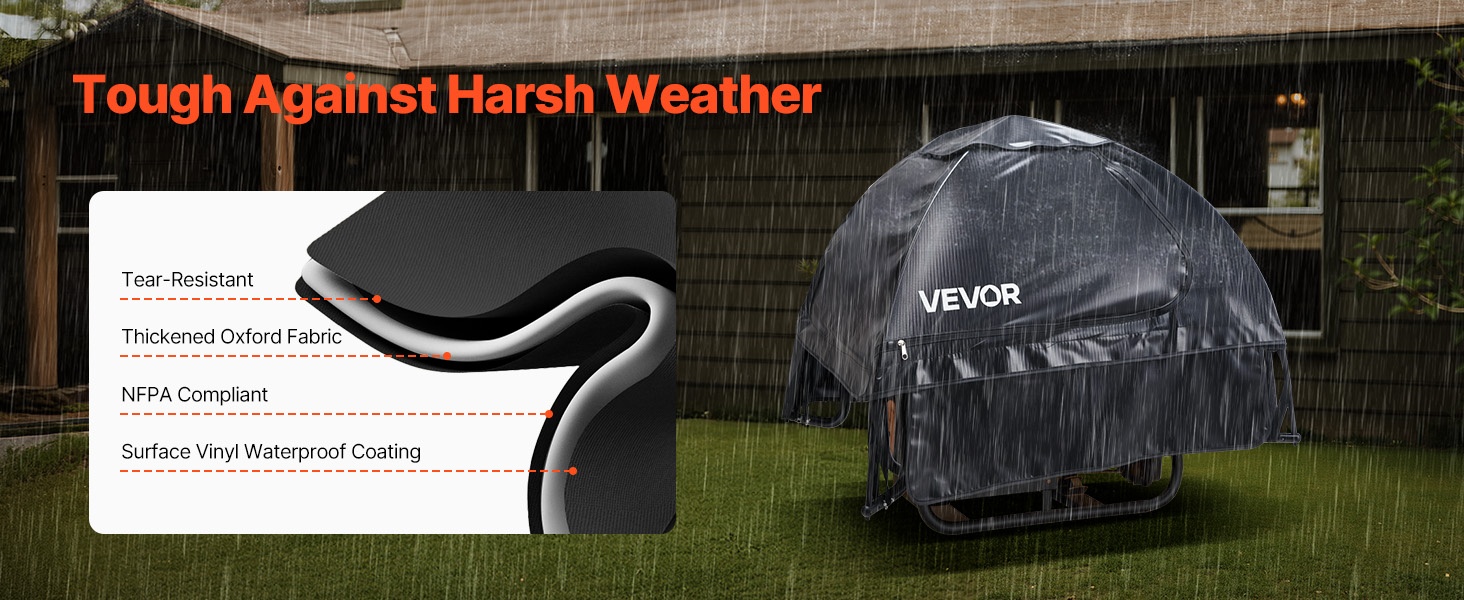 Peite on valmistettu raskaasta Oxford-kankaasta, jossa on kestävä pinnoite. Materiaali on suunniteltu kestämään kulutusta, repeämistä ja vettä, jotta generaattori pysyy paremmin suojassa vaihtelevissa sääoloissa kaikkina vuodenaikoina.