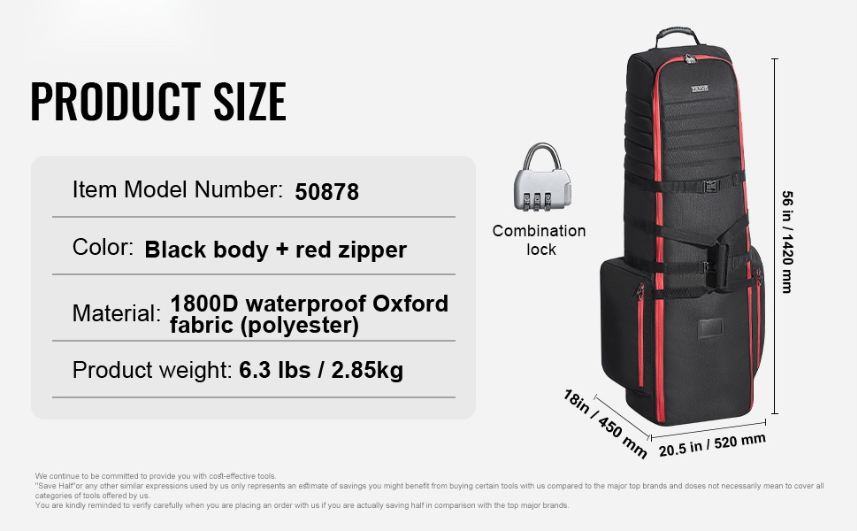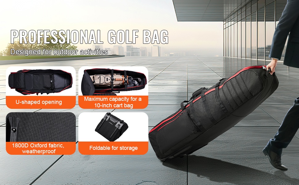 Golf-matkalaukku pehmustettu vedenpitävästä 1000D-nailonista pyörillä taitettava lukittavilla vetoketjuilla