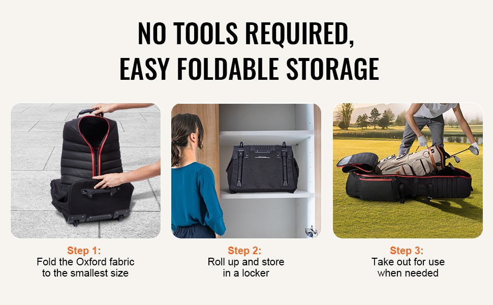 Taitettava rakenne tekee laukusta helpon varastoida ja ottaa käyttöön. Se sopii tilanteisiin, joissa tarvitset liikkuvuutta – kuten golfkentille, matkustukseen ja erilaisiin sisä- ja ulko-olosuhteisiin. Laukun saa käyttövalmiiksi muutamassa sekunnissa.