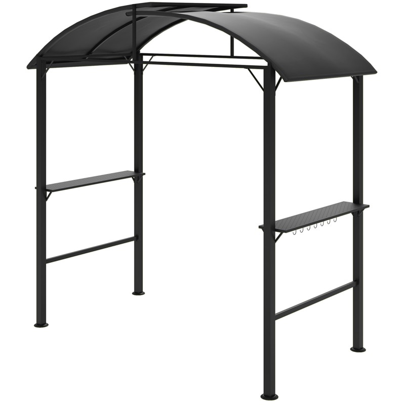 Tee grillauksesta mukavampaa säässä kuin säässä. Tumma, 1,1 x 2,3 m grillikatos suojaa liialliselta auringolta, päästää savun poistumaan katon kautta ja tarjoaa kätevän paikan sekä grillille että tarvikkeille. Teräsrunko, kaksi sivutasoa ja useat ripustuskoukut tekevät grillaamisesta järjestelmällistä ja sujuvaa.