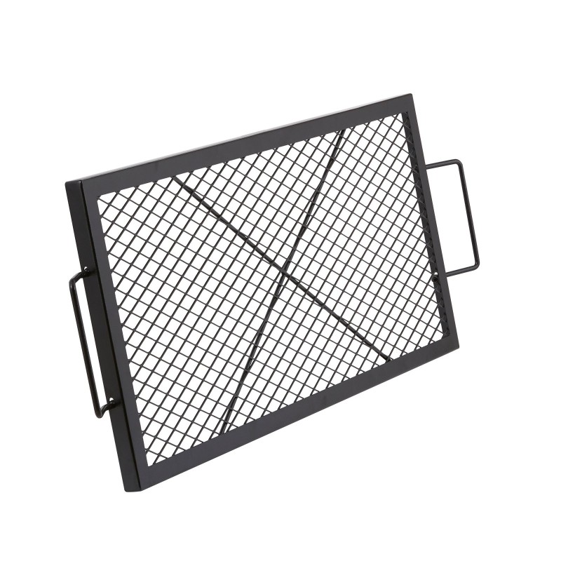 Tämä suorakulmainen grilliritilä sopii nuotiolle ja tulipesiin ulkokäyttöön. Tukeva teräsrakenne, X-mallinen tukilanka ja integroidut kahvat tekevät siitä käytännöllisen ratkaisun retkeilyyn, pihajuhliin ja muuhun ulkona kokkaamiseen.