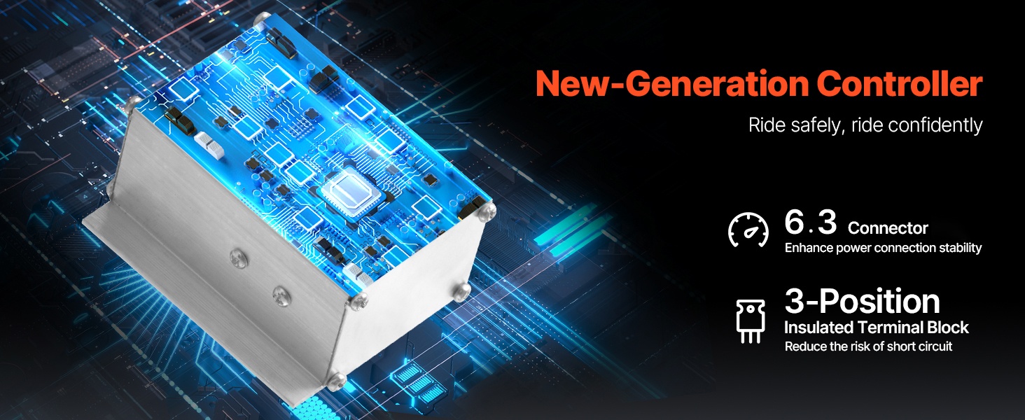 Uuden sukupolven ohjain lisää ajon turvallisuutta. XT60-liitin parantaa virtaliitännän vakautta, ja 3-asentoinen eristetty liitinrima vähentää oikosulkujen riskiä.
