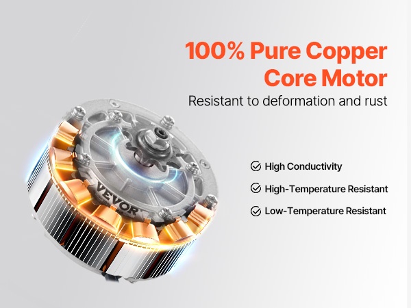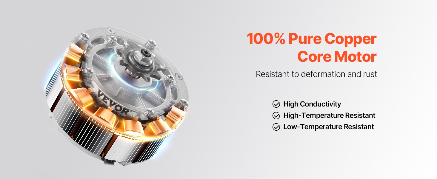 Moottorin 100 % puhdas kupariydin kestää hyvin muodonmuutoksia ja korroosiota. Hyvä sähkönjohtavuus tukee tehokasta toimintaa, ja rakenne on suunniteltu kestämään myös vaativissa sääolosuhteissa, jotta ajo säilyy mahdollisimman tasaisena.